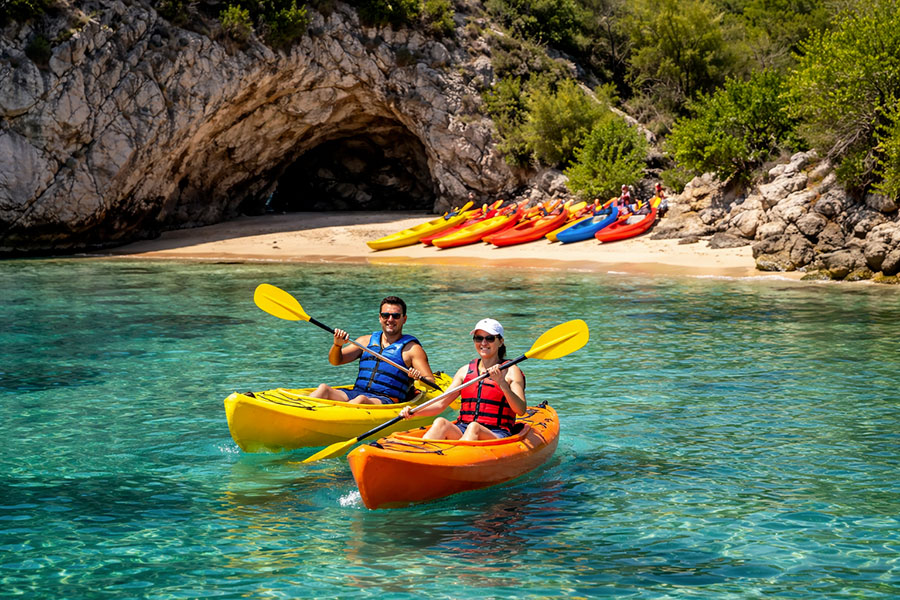Con il servizio di noleggio kayak di ArchiMete è possibile pagaiare lungo la baia di Tramariglio, avvicinarsi alle scogliere di Capo Caccia e scoprire angoli di natura incontaminata difficilmente raggiungibili via terra.